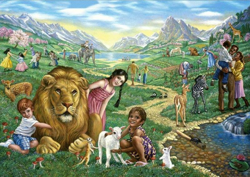 When Christians, especially Jehovah’s Witnesses, describe the paradise their scriptures depict, they seem to envision a place where all of our technological achievements have been peanut buttered over. They depict a pastoral landscape where lions literally lie down with lambs and people who once operated heavy machinery or managed accounts with Excel spreadsheets instead tend to crops with ordinary gardening tools.
