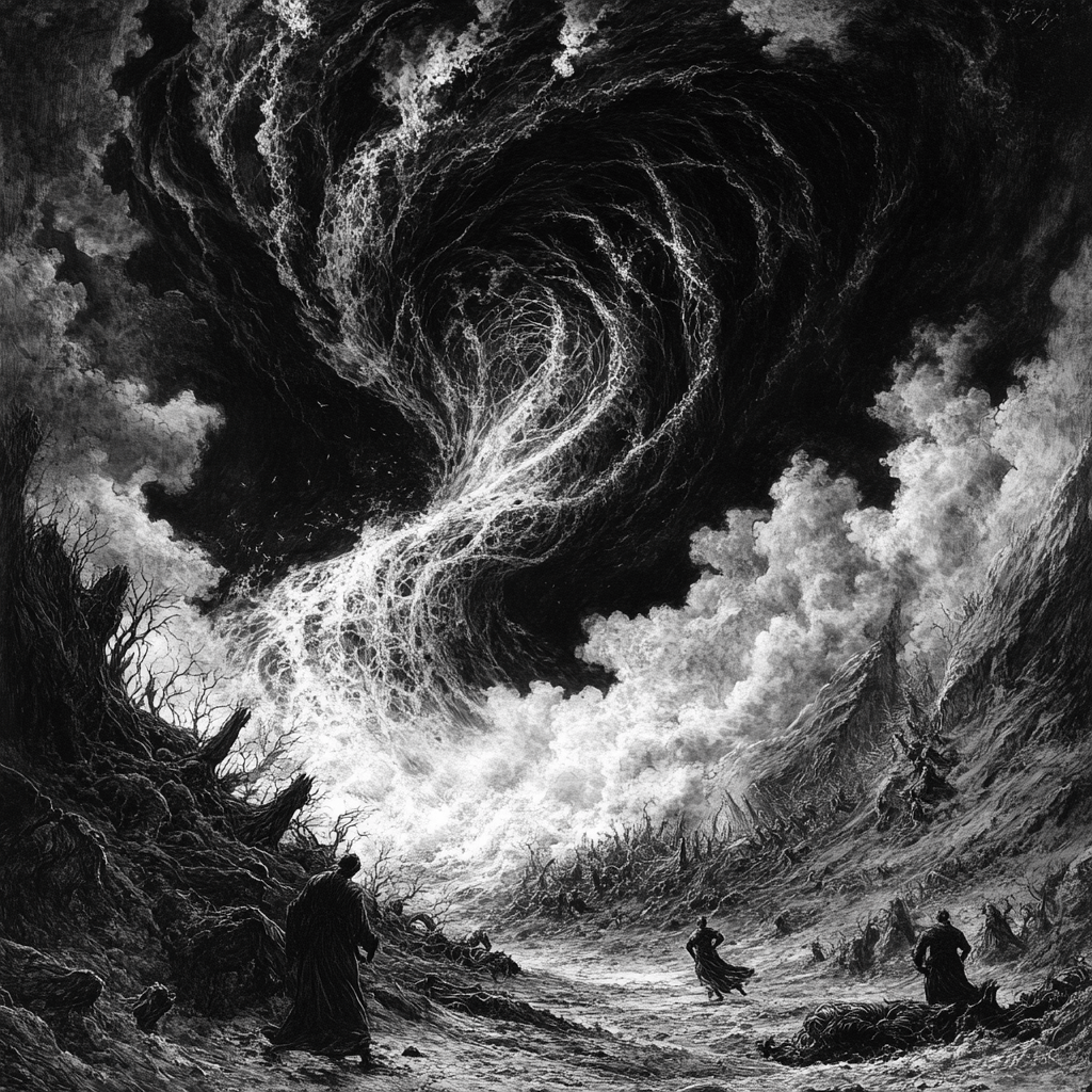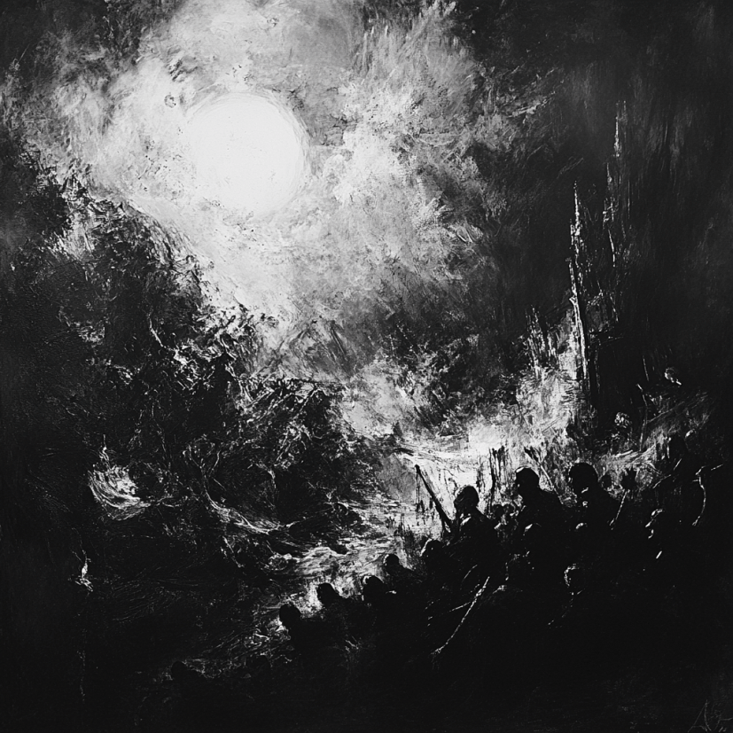 Death’s grip tightened, bringing woes unforeseen in the era of immortality. Old age descended upon the Elyrians, their once-vital forms growing frail, limbs trembling like leaves in the Whispering Range’s winds. Bodies of the fallen rotted where they lay, their stench rising from battlefields and villages, mingling with the decay of animals—the Trivox carcasses bloating in the plains, the Serath plummeting lifeless from the skies, their feathers scattering like fallen stars. Fruits, once devoured in perfect abundance without waste, now fell uneaten from the trees of the Starlit Canopy, rotting into foul mush that poisoned the soil. The people dug the first graves in the soft earth of the Silvren Valley, marking them with stones from the Crest of Dawn, their wails echoing as they buried kin beneath the moons’ gaze. Diseases sprouted like weeds, fevers sweeping through Windhaven; famines struck the Sunbaked Dunes when crops failed; and conflicts erupted anew—wars over scarce resources in the Frozen Spires, skirmishes laced with discord, where warriors fathered Discordants in the chaos of conquest.