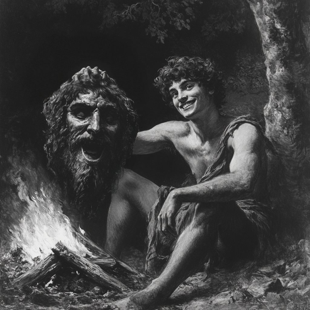 We hesitated, then joined him, the meat’s aroma overpowering caution. “Heth,” I said, “and Lirael. We’re eastward bound on Nua’s call—a dream commanding me to seek the blue, sharing our faith with giants’ kin, measuring Aetheria’s span.”
