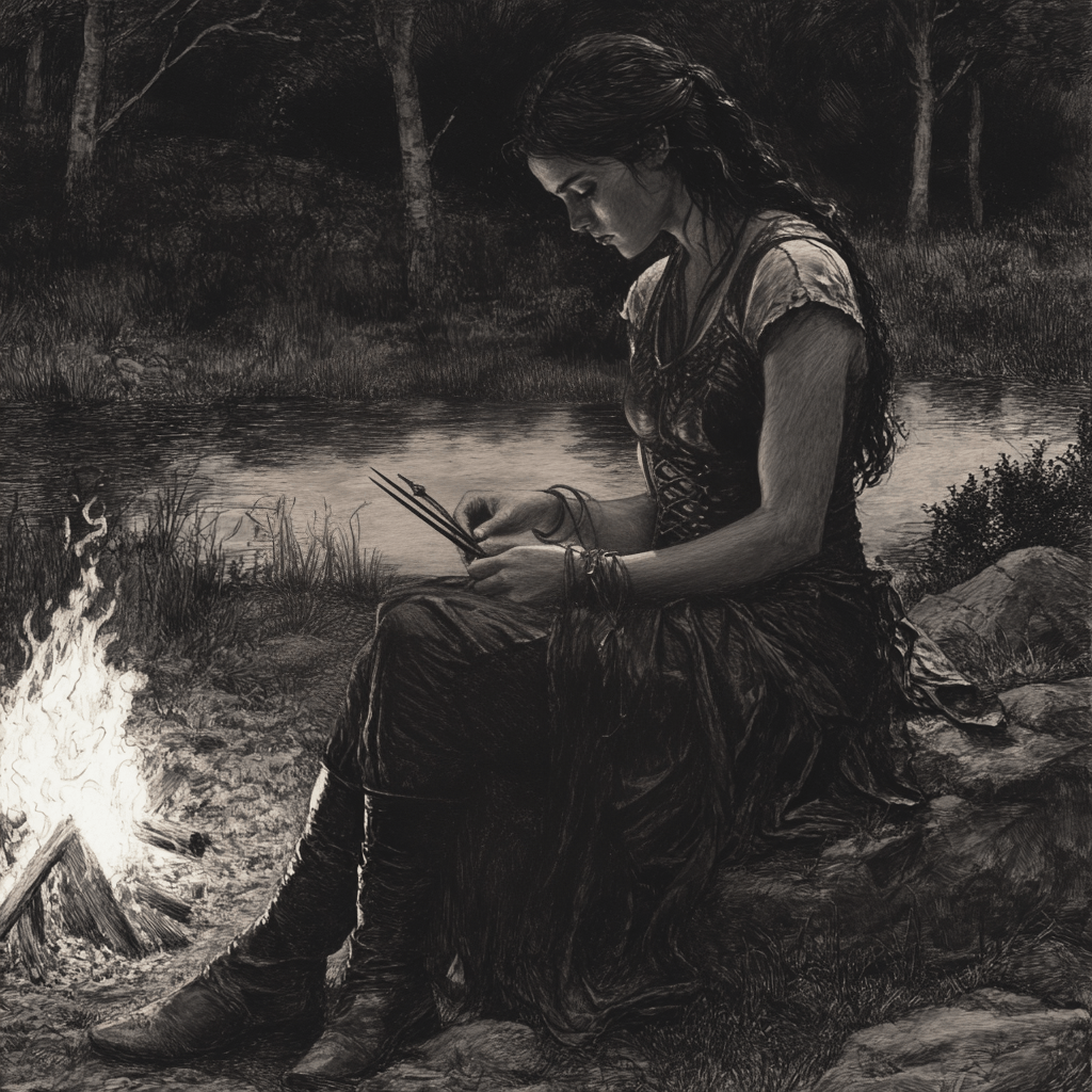 I recoiled, stomach turning at the grisly sight. Lirael, though pale, whispered to me, “Another provision, Heth.” I understood—his wild strength could guard us eastward. He was the trapper I had carelessly wished for, versed in the wild’s ways, but somehow better—a syren whose ferocity matched the woods themselves.